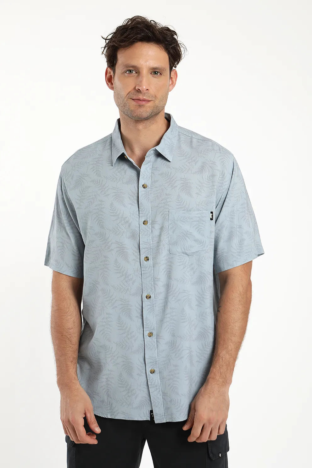 Camisa hombre manga corta Viscosa helechos gris - Viscosa
