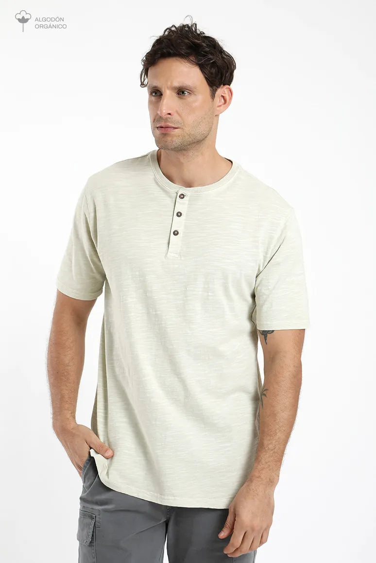Camisa hombre manga corta Texture palmeras olivo - Algodón orgánico
