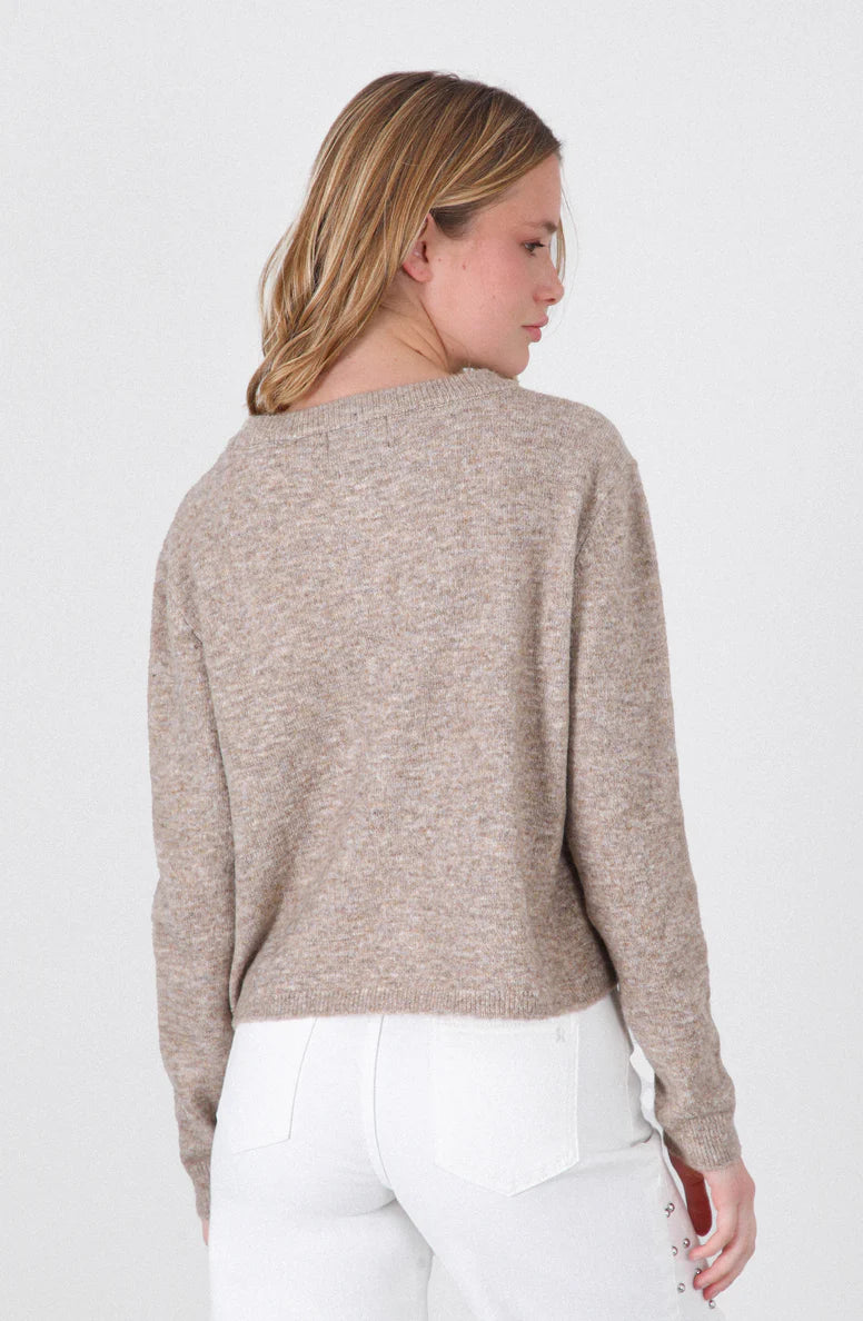 Cardigan Beige es una prenda cómoda y atemporal. Tiene un diseño de cuello redondo, fit suelto y botones al tono, ideal para usar en capas o como protagonista.