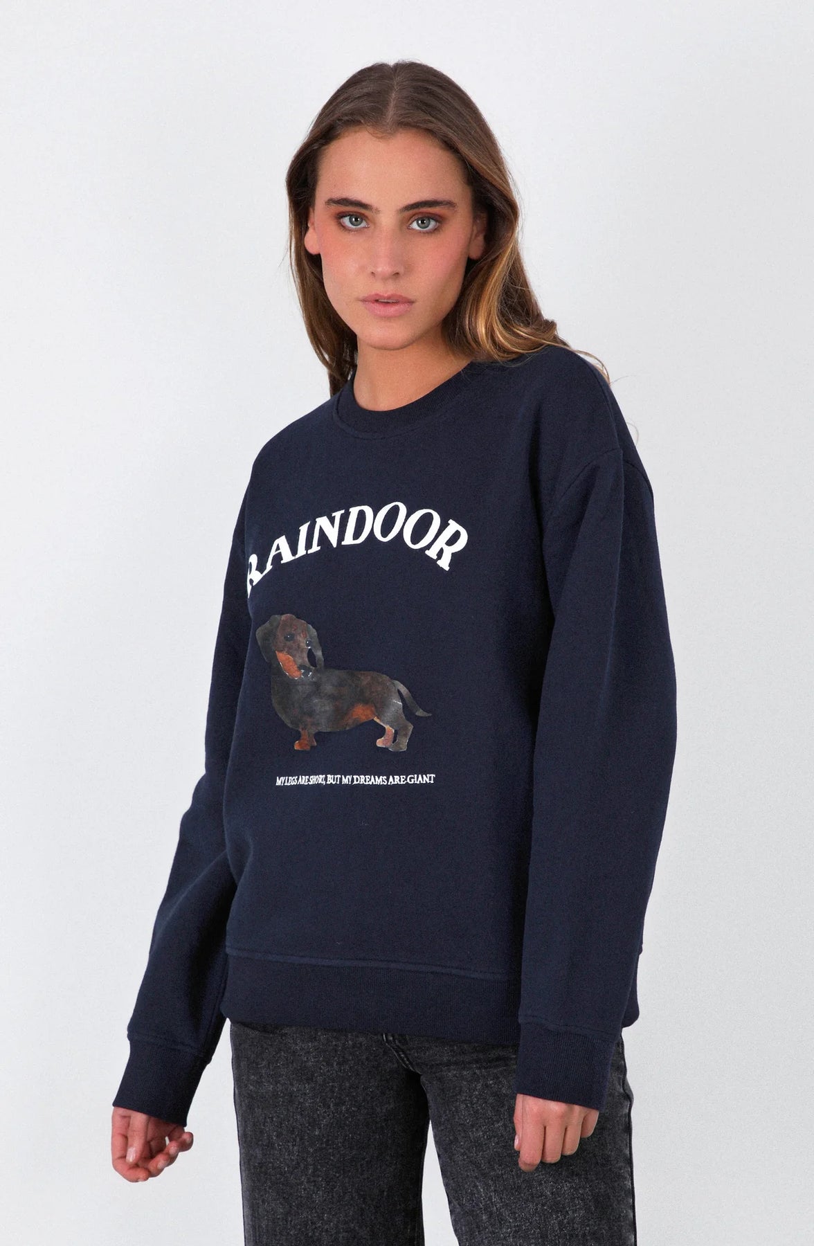 El Polerón Crew Neck Estampado Navy es una prenda versátil y con carácter, ideal para agregar un toque distintivo a tus looks casuales. Su diseño destaca por el estampado central de un perro salchicha, acompañado del texto: “My legs are short, but my dreams are giant”, que entrega una vibra auténtica, original y encantadora.