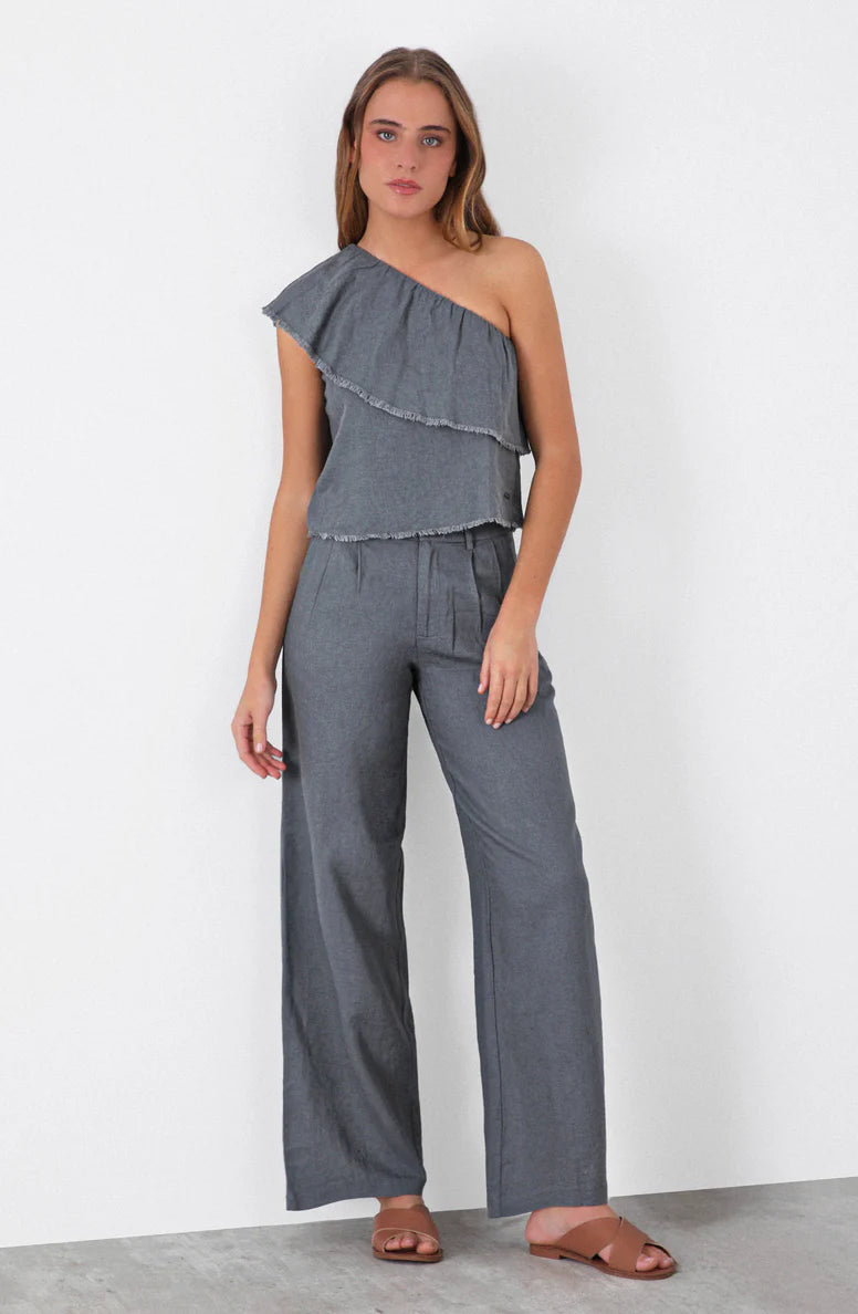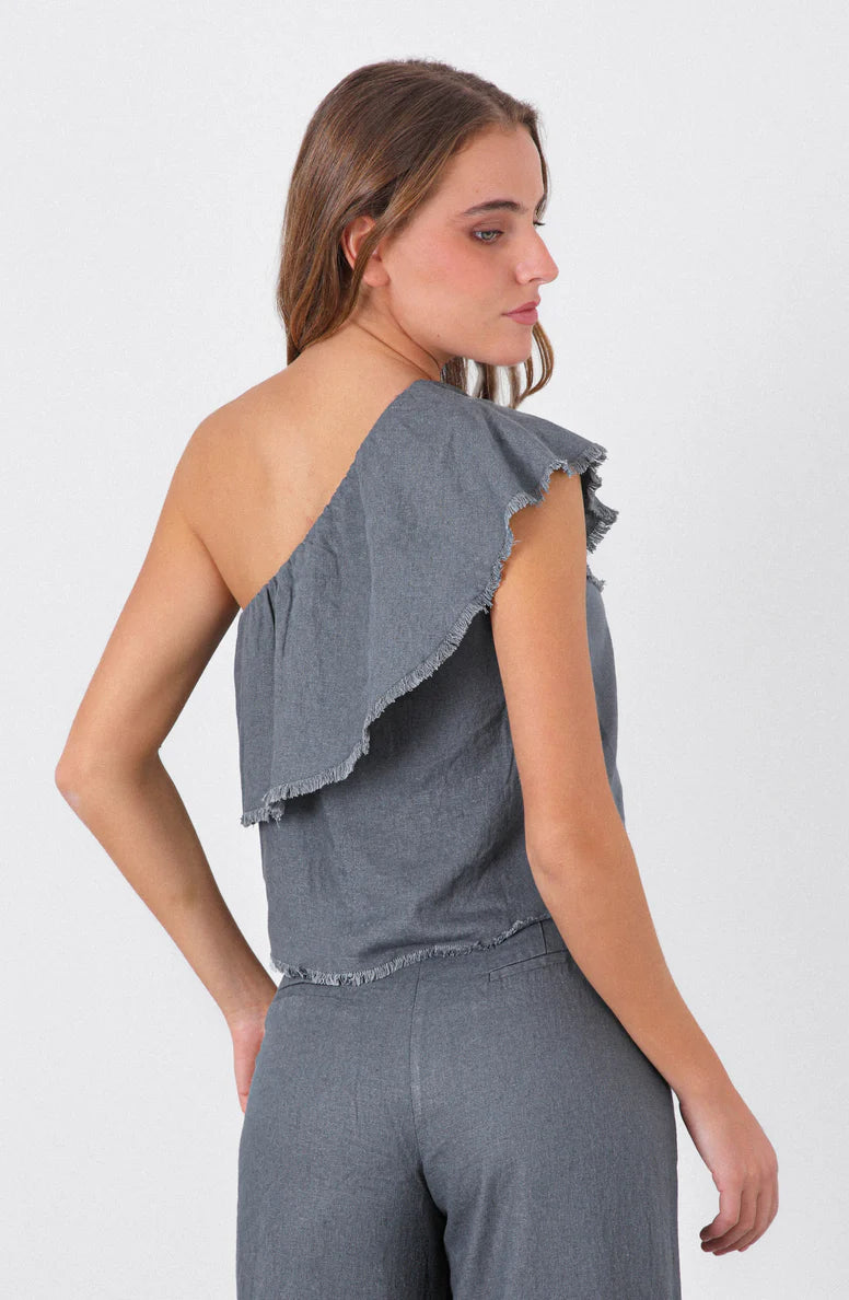 Top Hombro Vuelos Grey