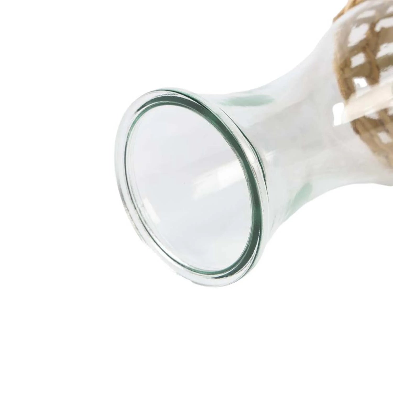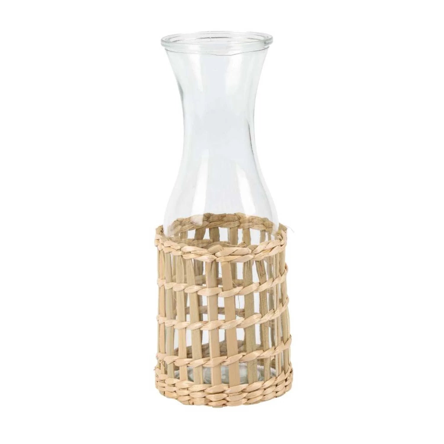 Este elegante jarro combina la simplicidad del vidrio transparente con el encanto natural del tejido decorativo en tonos beige. Perfecto para darle un toque rústico y sofisticado a tu hogar. Su diseño estilizado y dimensiones de 10x27 cm lo hacen ideal para decorar mesas, estantes o como florero para arreglos minimalistas.